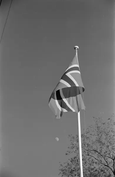 Flagg på Frogner stadion på Danmarks nasjonaldag 5. juni 1945.
