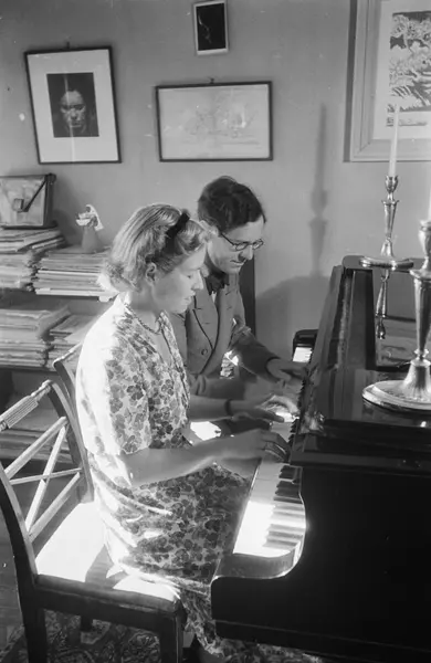 bolig, interiør, stue, mann, kvinne, ektepar, pianister, flygel