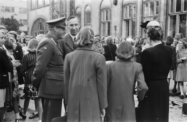 Nissens Pikeskole, skolegård, kronprinspar, prinsesser, første skoledag, mann, rektor, jenter, medlelever