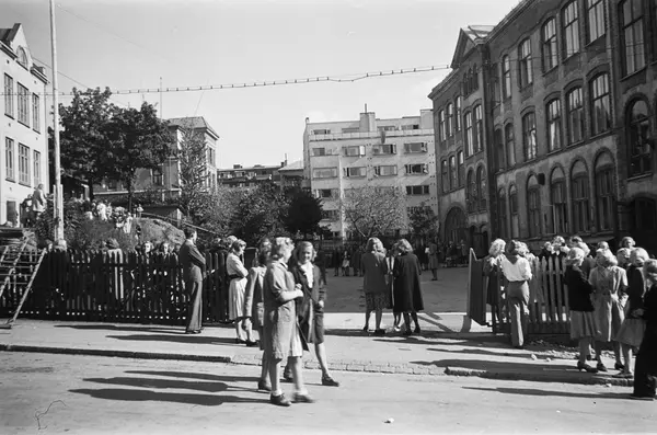 Nissens Pikeskole, skolegård, jenter, elever, Oslo kommunale handelsskole, villa, boligblokk