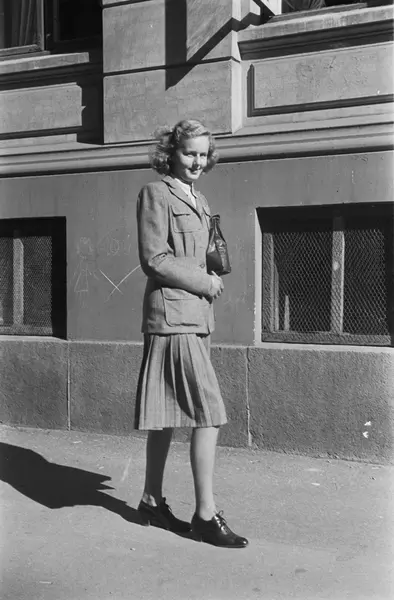 gate, jente, elev ved Nissens Pikeskole, bygård