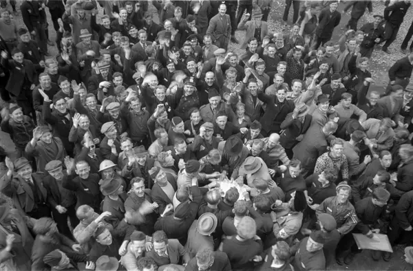 Grini fangeleir ved løslatelsen av fangene.