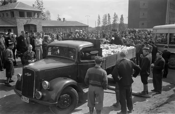 Grini fangeleir ved løslatelsen av fangene.