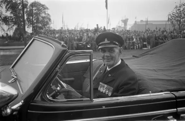 Kong Haakons sjåfør ved hjemkomsten etter krigen.
