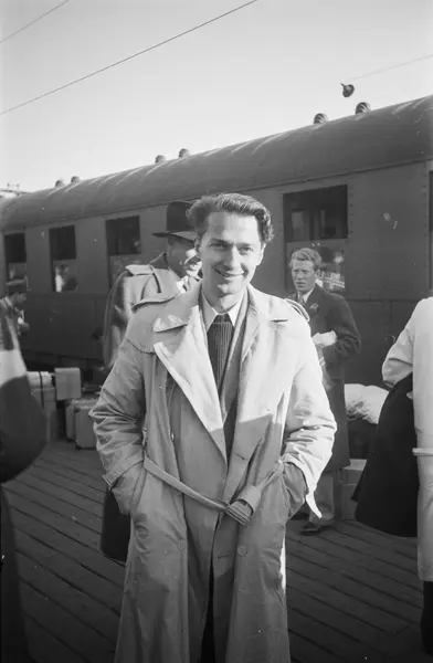 Østbanestasjonen, plattform, mann, student, hjemkomst fra fangenskap i Buchenwald