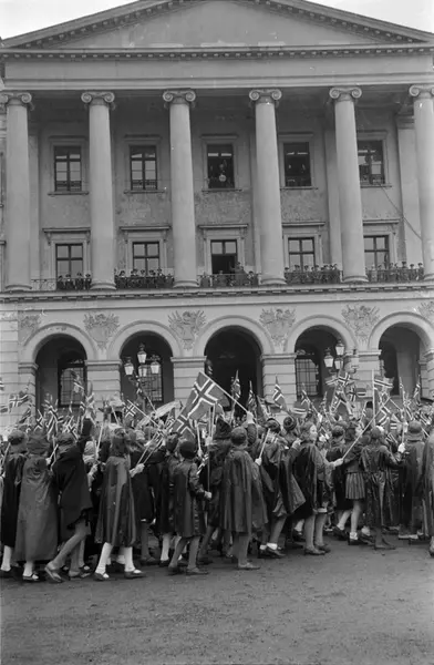 17. mai-feiring, barnetog, barn, flagg, Slottet, balkong, kronprins, offiserer