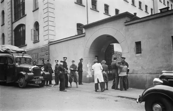 Møllergata 19, politistasjon, sideinngang, fengselsfløy, mennesker, politi, biler