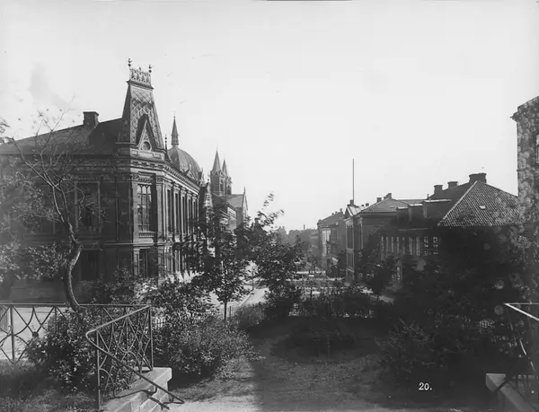 St. Olav Domkirkes kirketrapp, hage, utsikt, gateløp, bygårder, Kurbadet, Hammersborg skole
