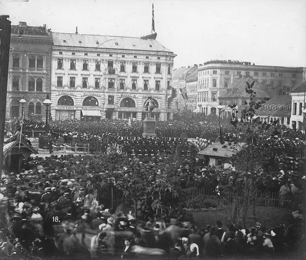 Fra avdukingen av Kristian IV-statuen på Stortorvet.