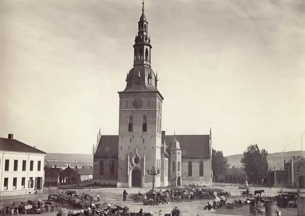 torg, torghandel, Vår Frelsers kirke, bygård, hestekjøretøyer, Fiat Lux