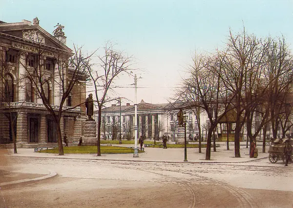 Nationaltheatret, park, portrettstatuer, musikkpaviljong, Universitetet, mennesker