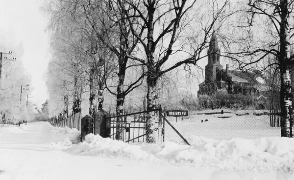 vei, gjerde, port, Nordstrand krike, trær, snø