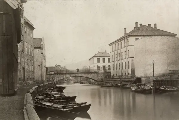 elv, småbåthavn, robåter, bygårder, Vaterlands bro, mennesker