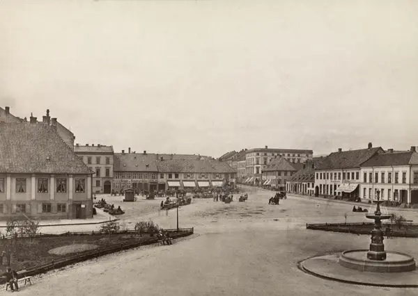 torg, torghandel, springvann, bygårder