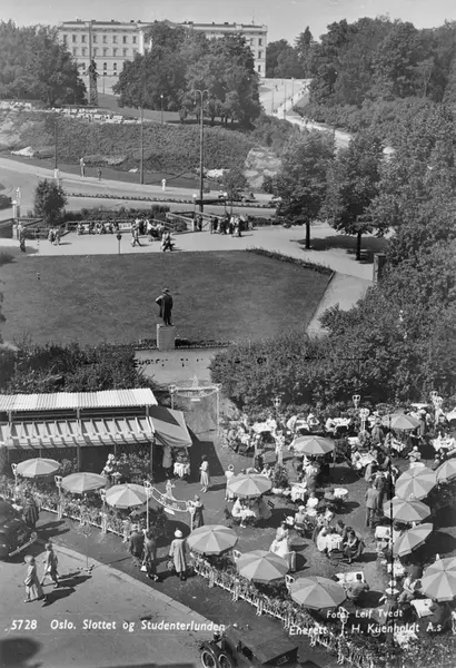 utsikt, Pernille friluftsrestaurant, nedgang til Holmenkollbanen, park, portrettstatue, Slottet