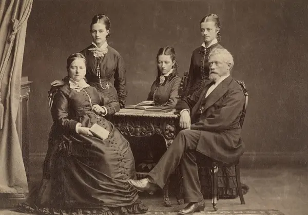 Fra venstre Mathiane Charlotte Ovidia Sundt, Asta Emilie Petrea Sundt, Ragna Louise Drejer Sundt, Inga Marie Caroline Sundt, Johan Lauritz Sundt.