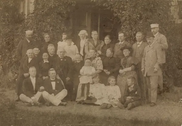 Bak, nr 5 fra venstre: Frederik Wilhelm Louis Hiorth, nr 4 fra høyre F.W.L. Hiorth.