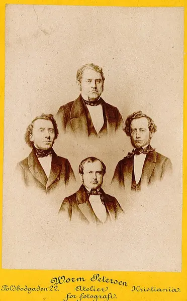 Øverst: Jacob Frederik Dietrichson. Nederst: Rasmus Tønder Nissen. Til venstre: Carl Paul Tønder. Til høyre: Gisle Christian Johnson.