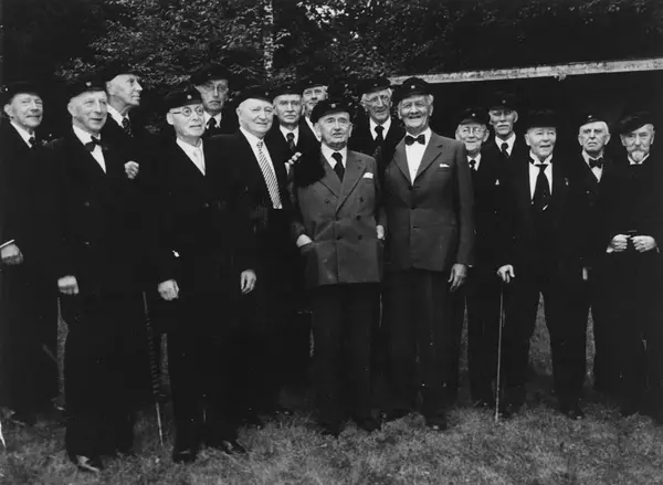 Hauk Aabel i midten, til høyre for ham Nicolai T. Rygg (nr. 7 fra venstre).