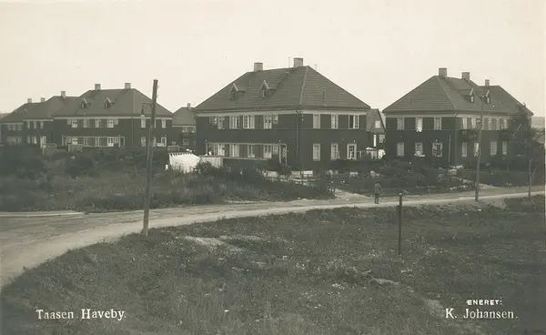 Tåsen hageby, bolighus, hager, gjerder, vei