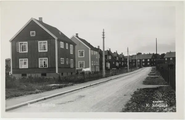 Tåsen hageby, bolighus, hager, gjerder, vei