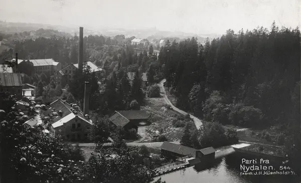 utsikt, fabrikkbygninger, skog, kulturlandskap