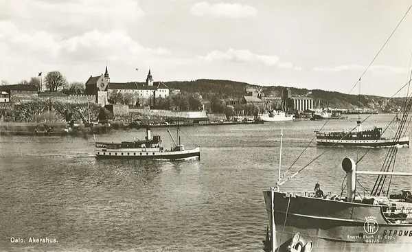 fjord, dampbåter, fjordbåter, havn, Akershus festning, kornsiloer
