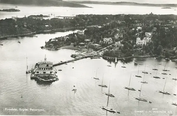 utsikt, Dronningen restaurant, fjord, seilbåter, Norske studenters roklubb, villabebyggelse