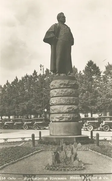 portrettstatue, Nationaltheatret, blomsterbed, kaktusbed, parkeringsplas, biler