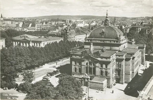 park, Nationaltheatret, Universitetet, forretningsgårder, Stortingsbygningen