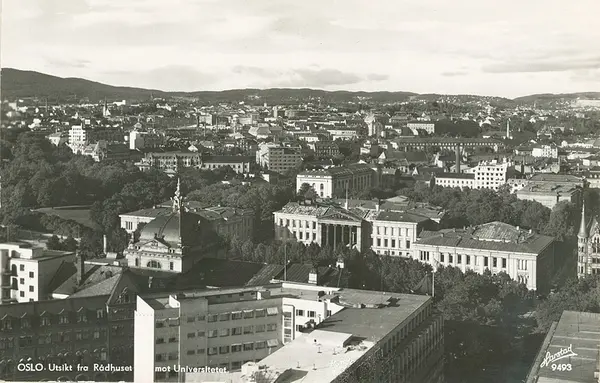 Oslo. Utsikt fra Rådhuset mot Universitetet.