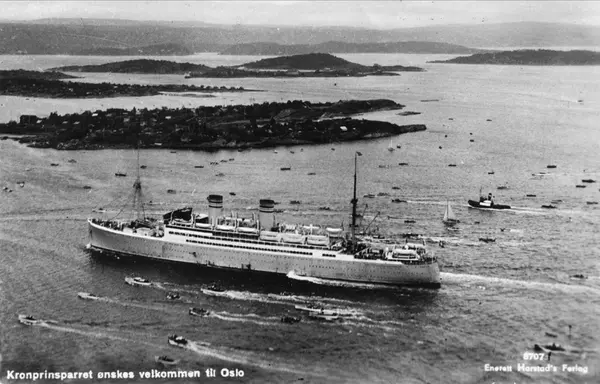 fjord, Amerikabåt, kronprinsparets hjemkomst fra Amerikatur, småbåtarmada, øy