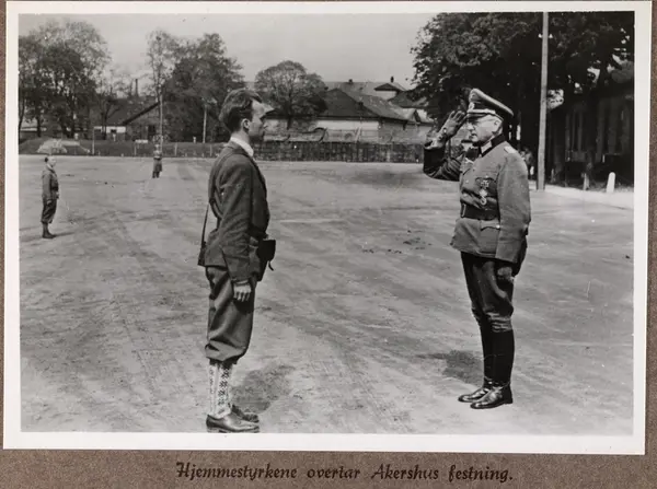 feiring av frigjøring og fred, overtakelse av Akershus festning, menn, uniform, selbustrømper