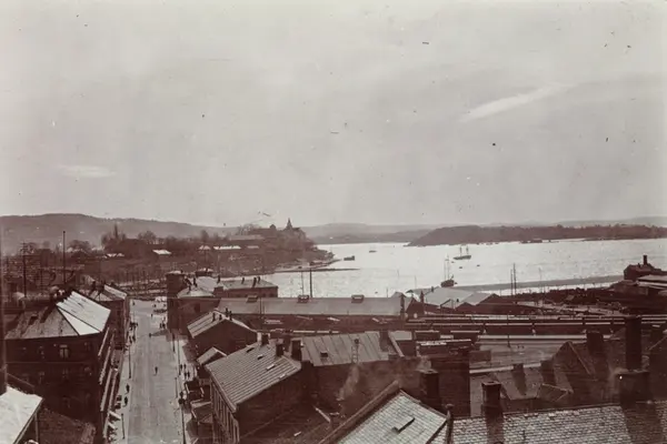 utsikt, gateløp, bygårder, havn, fjord, Akershus festning