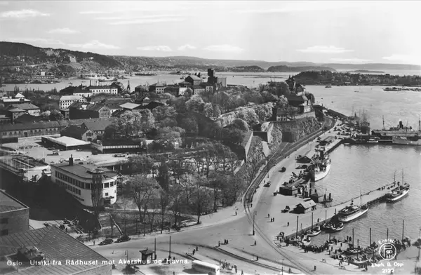 Oslo. Utsikt fra Rådhuset mot Akershus og Havna.