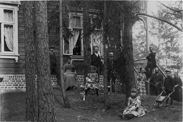 landsted Furuhaug, furustammer, tømmervilla, menn, kvinner, jente, gutt