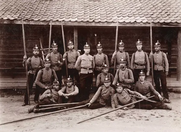 gruppe, soldater, vernepliktige leger, uniformer, stenger til sykebårer