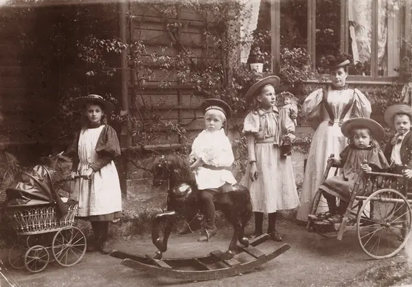 barn, kvinne, leketøy, dukkevogn, gyngehest, rullestol, klatreplanter, stuevindu