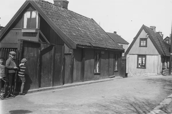 Johannesgata 5 nærmest og nr. 4 til høyre. Fotografen står i Stupinngata.