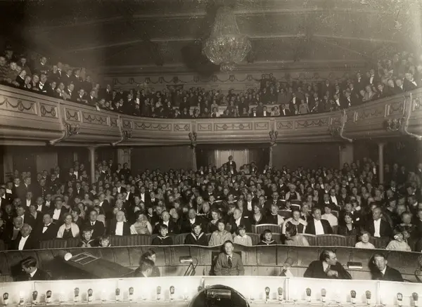 Centralteatret, interiør, teatersal, publikum, gymnassamfunn, jubileumsforestilling, orkestergrav, rampelys, sufflørkasse