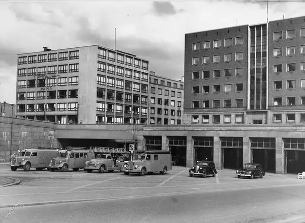 Hovedbrannstasjonen, brannbiler, stigebiler, kontorbygning