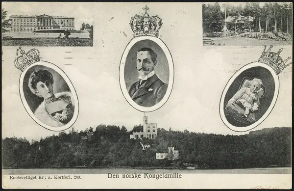 montasje, portretter, kongefamilien, konge, dronning, kronprins, brystbilder, Slottet, Oscarshall, Villa Victoria