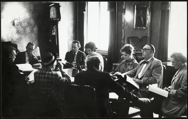 Nationaltheatret, interiør, skuespillerfoajé, leseprøve på "Balansegang" av Edward Albee, skuespillere, sceneinstruktør, scenograf