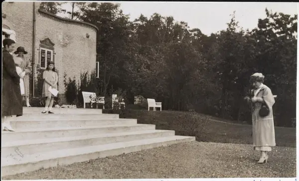 villa, hagetrapp, hage, kvinner, dronning, fotografering