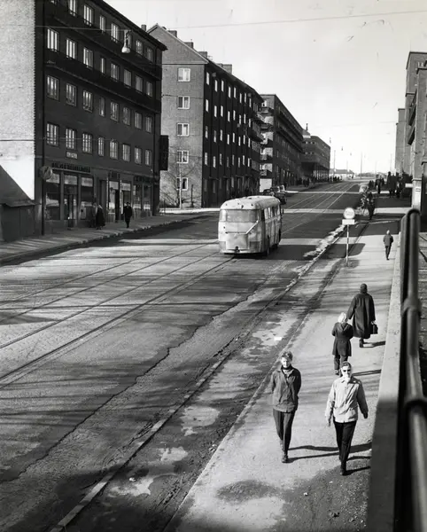 gate, buss, fortau, mennesker, turgåere, boligblokker