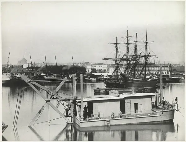 fjord, fartøy, menn, seilskip, havn, Tollboden, Østbanestasjonen
