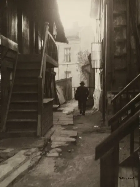 trehusbebyggelse, trapp, svalgang, smug, mann, bygård