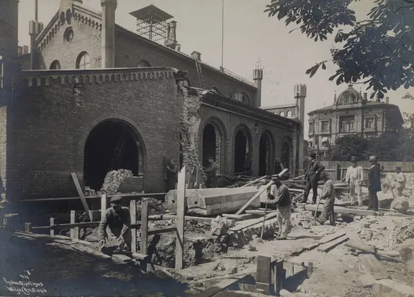 Brannvakten, anleggsarbeid, ombygging, menn, anleggsarbeidere, forretningsgård