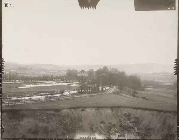 Økern gård - midt i bildet - er første gang nevnt i et brev fra 24. mars 1279, og der skrevet Æykrin. Det største våningshuset brant ned i 1932. Ulven gård - i bakgrunnen til venstre - er første gang nevnt i et brev av 8. oktober 1312, skrevet som Ulfuin. Låven ble revet på tidlig 1990-tall i forbindelse med bygging av boligblokker på området. Det fredede våningshuset brant ned i 1995. Nede til høyre ligger den eldste bygningen på Løren skole, oppført 1891 på grunn utskilt fra Løren gård, med tomt på 10 mål. I dalbunnen her går Refstadbekken, som har sin hovedkilde ved Refstad gård. Bekken passerer like øst for skolehagen på Løren skole, og forener seg med Hovinbekken 200 m sør for jernbanelinjen (Alnabanen, anlagt 1900). I bakgrunnen skimtes låven og våningshuset på Løren gård. Denne er nevnt i 1370, da betegnet Læyrini. I forgrunnen sees litt av Økern sandtak. Dette ble fra 1905 forpaktet av Kristiania Mørtelverk, som deretter kjøpte sandtaket i 1911, omfattende 80 mål.