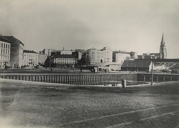 havn, basseng, plass, bygårder, mennesker, Johanneskirken
